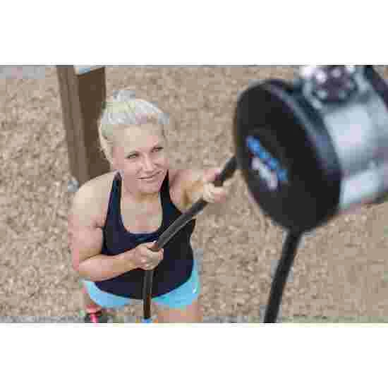The Aerobis revvll PRO has a 4 m long rope, which does not have any glue seams or screw joints. Its special feature is its durability and its uniform pull. In addition, the reinforced, robust housing protects your training product. A eddy-current brake with rotating discs made from aluminium makes constant use possible. Especially practical: The fitness trainer is easy to transport thanks to its light weight and is also easy to mount almost anywhere using the anchor sling.