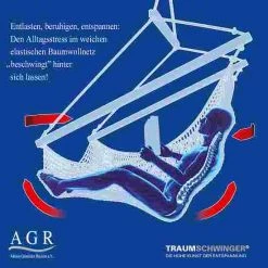 The XXL Dream Swing is made of 100% pure cotton. The large, soft hammock hugs the body, distributing the pressure evenly across the swing’s surface. This relieves the spine, body and joints. Cotton fabric is ideal, especially for people who are touch-sensitive. The Dream Swing is washable – which is a great advantage, particularly for allergy sufferers.