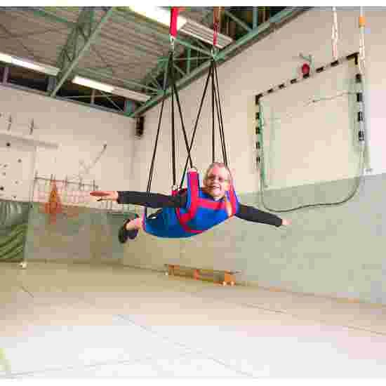 The suspended swing from Sport-Thieme is lots of fun – swinging, rocking, turning and “floating” – all is possible. Lie on your belly and push off the floor using your hands, and the swinging fun can begin! Suspend the swing higher and you can use your feet to push yourself off the floor. The swing is suspended either on two rings or using a one-point attachment. Nervous and anxious children will quickly learn to trust the swing. The position of the suspension strings can be adjusted using the eyelets. The suspended swing adapts to every body position e.g. lying on your stomach, back or perched. The swing is available in two versions – for children or adults.