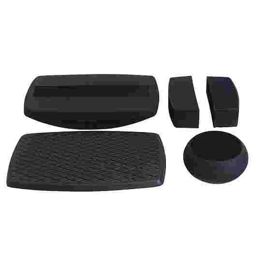 The Sport-Thieme “Multi” balance board consists of a board that has a fleece strip on its underside, to which the additional parts (disc, rocker, blocks) can be easily attached and positioned wherever you like. By attaching the blocks, for example, this allows you to create an aerobics step. The range of possible combinations allows the user to train coordination and balance in a coordinated manner. The board is made of wood with EVA foam and is thereby very robust. What’s more, it features a pimpled surface, which provides secure footing. The additional parts are made of EVA foam and are very easy to store.