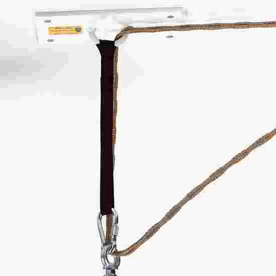 The 1.5-m-long loop rope with chain quick-release fastening is attached to the mini ceiling plate included and pulled through the sections of the attachment. This prevents falling if the hook breaks.