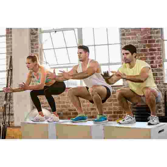 The Sport-Thieme wooden plyo box distinguishes itself with its three different training heights. Depending on which side of the box you use, the height of the box changes. Particularly practical: the corners of the box have been rounded off to guarantee a safe workout. The plyo box also provides you with the ability to create an obstacle course and carry out an intensive plyometric workout at different heights.